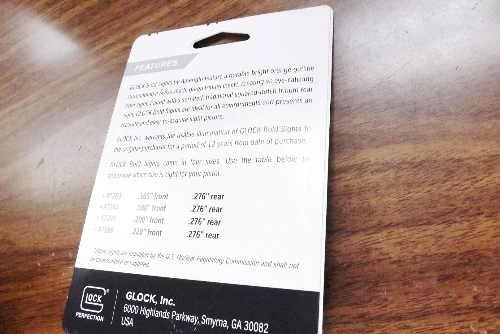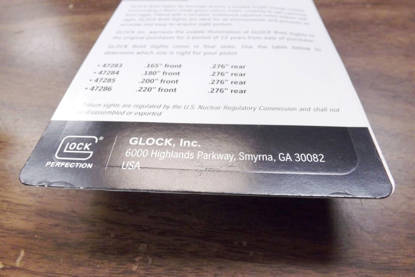 rear sights to fit Fifth Generation Glock pistols, models 17, 19, 26, and 34.